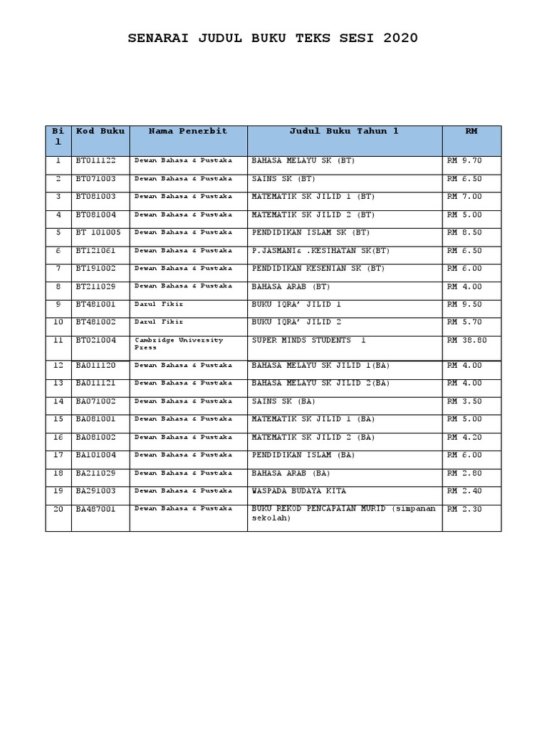 Senarai Harga Buku Teks Dan Buku Aktiviti 2020 Flip Ebook Pages 1 8 Anyflip